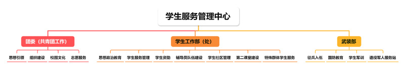 学生服务管理中心在学生工作大部制改革背景下应运而生,构建“保障支撑+发展赋能”双线融合工作模式,推动学生工作“事务管理”与“成长服务”同频共振。中心负责全校学生思想政治教育、日常服务管理、学生资助、辅导员队伍建设、社区管理、第二课堂建设、武装工作、特殊学生群体服务管理及共青团工作等模块的整体规划与跨部门协调,推动形成全员、全过程、全方位、全领域育人合力,助力学生成长成才。