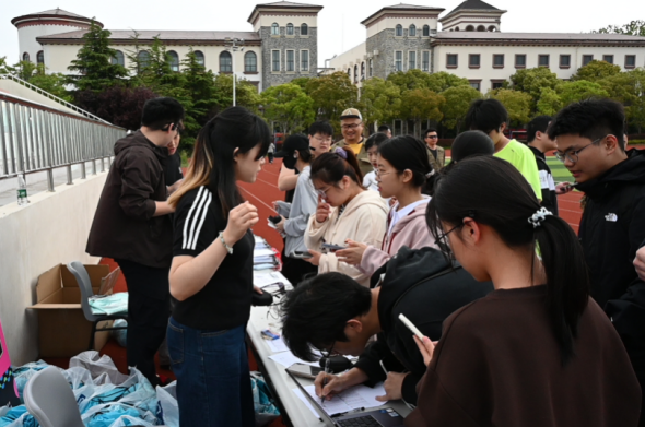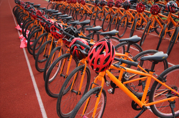 早上9点,100余名师生在操场集结,在工作人员引导下有序完成身份核验,随着头盔、护具、能量补给包等骑行装备陆续发放到位、列队完毕,青春的气息与跃动的车铃交织成春日序曲。