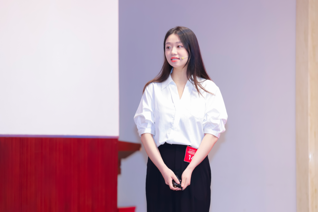 决赛现场,严同学以《以奋斗之名,赴强国之约》为题,生动讲述个人成长历程:在学业方面,锐意进取,积极考取各类证书;在社会实践方面,深入社会热点一线,完成高质量调研报道;在志愿服务方面,作为进博会的“小叶子”以跨文化沟通能力服务全球来宾,诠释“奉献、友爱、互助、进步”的服务精神。严同学特别强调,上海市奖学金给予自己的不仅是经济支持,更是精神鼓舞,激励她不畏艰苦、奋勇拼搏,以青春之姿、奋斗之态回应时代召唤。