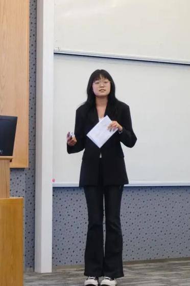 在优秀学生助理颁奖环节,商学院林虹宇同学代表优秀学生助理发言,她介绍了在助理团的成长与收获,并感谢指导老师的悉心指导与支持。