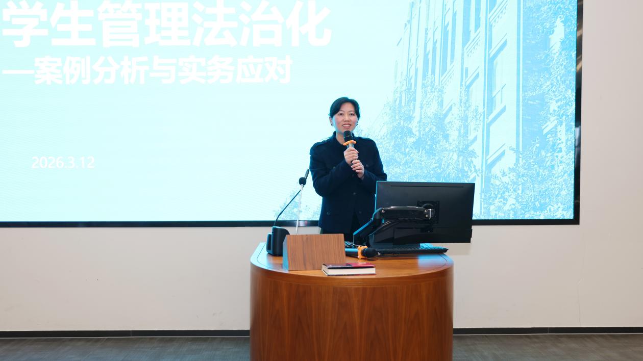 会上,校党委副书记郑虹作《学生管理法治化——案例分析与实务应对》专题讲座。讲座以案例剖析为抓手,结合工作实际拆解法治实践要点,帮助参会人员更直观掌握法治思维在学生工作中的应用方法。郑书记围绕一起典型学生财物丢失处置案例,引导与会人员深入反思学生管理人员在此类事件中的法定职责、行为边界与沟通规范,保障学生合法权利,防范工作中的法律风险。
